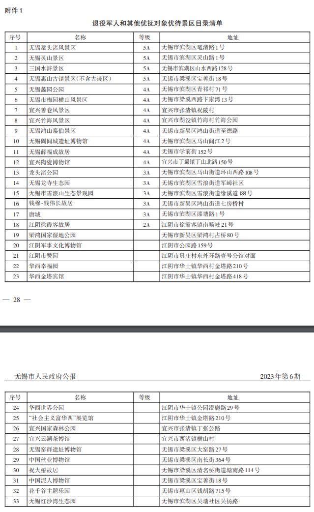 附件:1.退役軍人和其他優(yōu)撫對象優(yōu)待景區(qū)目錄清單