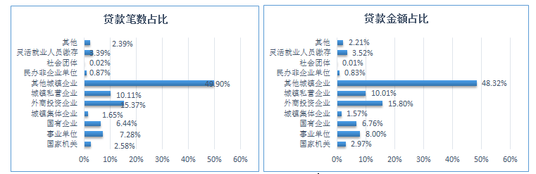 2023年三季度職工貸款筆數(shù)及貸款金額按單位性質(zhì)分類占比圖