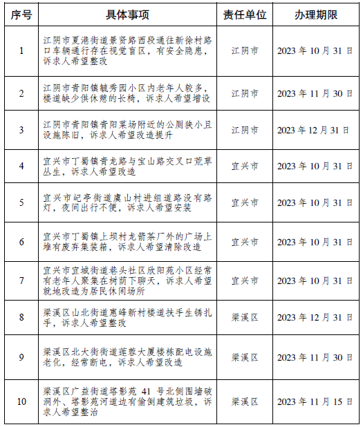 無錫市“微幸福”民生工程2023年第18批(總第59批)重點督辦事項清單