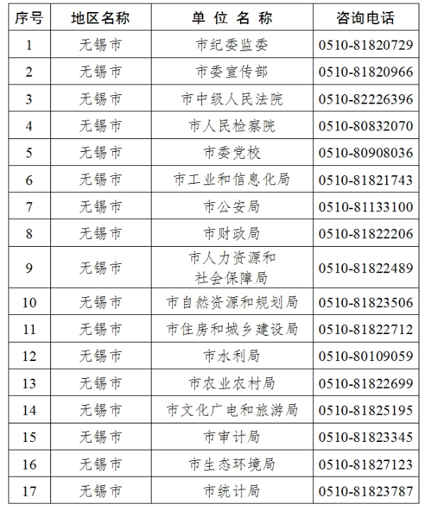 無錫市2024年度考試錄用公務(wù)員招錄單位咨詢電話 |