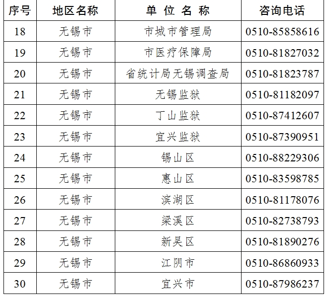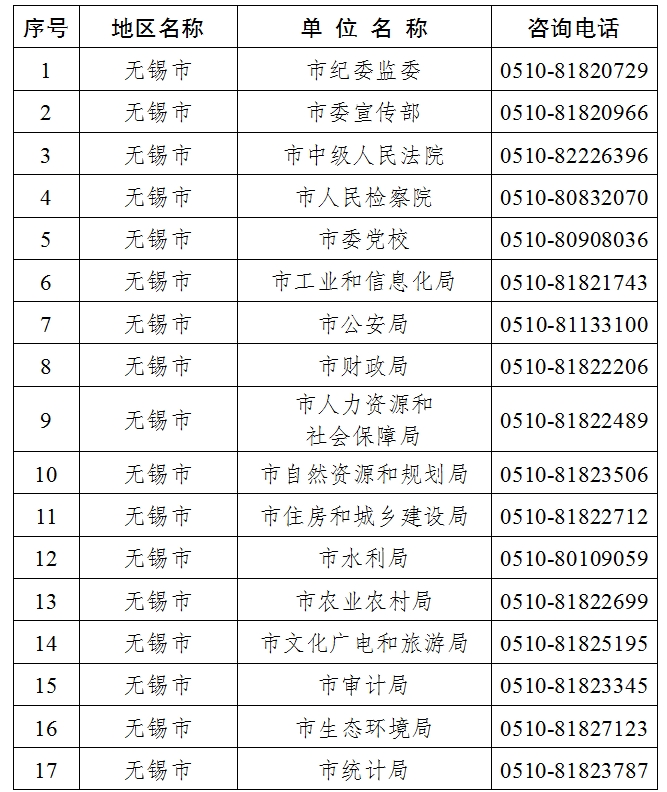 無錫市2024年度考試錄用公務(wù)員招錄單位咨詢電話
