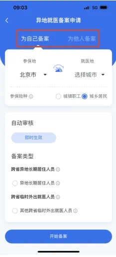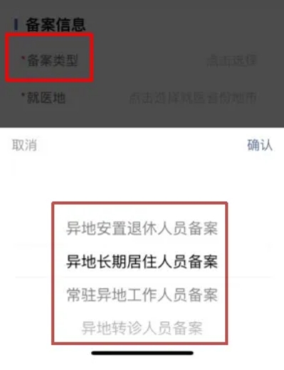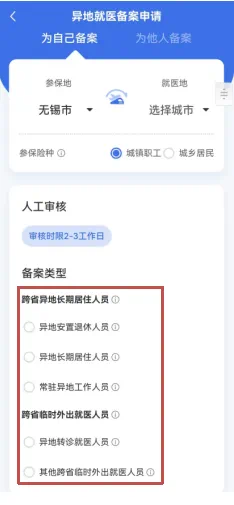 第三步:選擇備案類型——異地就醫(yī)申請。