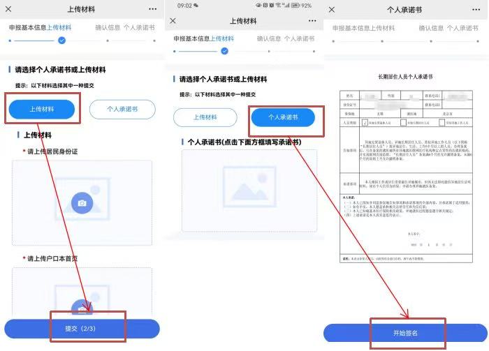 第七步 按照提示上傳材料,或簽寫個(gè)人承諾書。