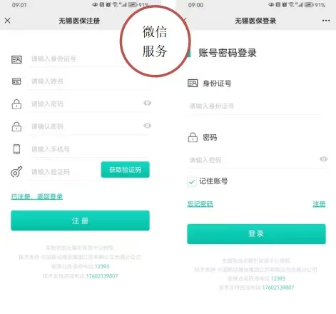 第一步:關(guān)注“無錫醫(yī)保”微信公眾號,點(diǎn)擊“業(yè)務(wù)辦理”,選擇“微信服務(wù)”,實(shí)名注冊賬戶,并登錄;