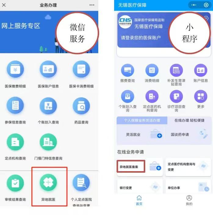 “無錫醫(yī)保”微信公眾號—業(yè)務(wù)辦理—小程序—異地就醫(yī)備案;