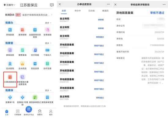 提交備案申請后,可以查詢審核結(jié)果。“無錫醫(yī)保”公眾號可返回“網(wǎng)上服務(wù)專區(qū)”,點(diǎn)擊“審核結(jié)果查詢”;“無錫醫(yī)保小程序”返回“異地就醫(yī)備案”,點(diǎn)擊“審核結(jié)果查詢”。