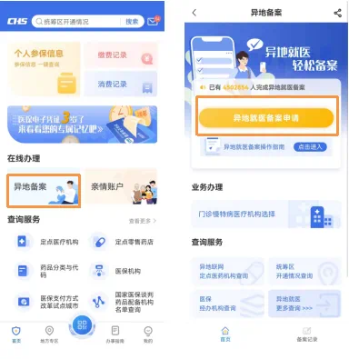 3.國家醫(yī)保服務(wù)平臺APP—在線辦理—異地備案(限跨省就醫(yī)備案);