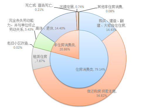 2023年四季度,住房消費類提取金額為49.4億元,環(huán)比增長5.35%,占當(dāng)季提取額的79.14%。其中還貸提取占比最高,提取金額35.47億元,占當(dāng)季提取額的56.82%。具體提取結(jié)構(gòu)如下: