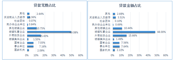 2023年四季度職工貸款筆數(shù)及貸款金額按單位性質(zhì)分類占比圖