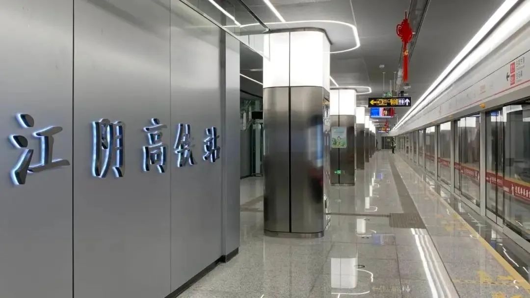 江陰高鐵站毗鄰滬寧沿江高鐵江陰站,臨近江陰主干道梅園大街、霞客大道,是S1線占地面積最大,出入口最多,交通換乘最便利、多樣化的車站。車站整體設(shè)計以大氣明亮為主體,燈光設(shè)計簡潔干練,站廳吊頂?shù)姆侄问讲ɡ嗽O(shè)計以及閉環(huán)式燈光條體現(xiàn)著錫澄兩地互聯(lián)互通,未來發(fā)展欣欣向榮的含義。