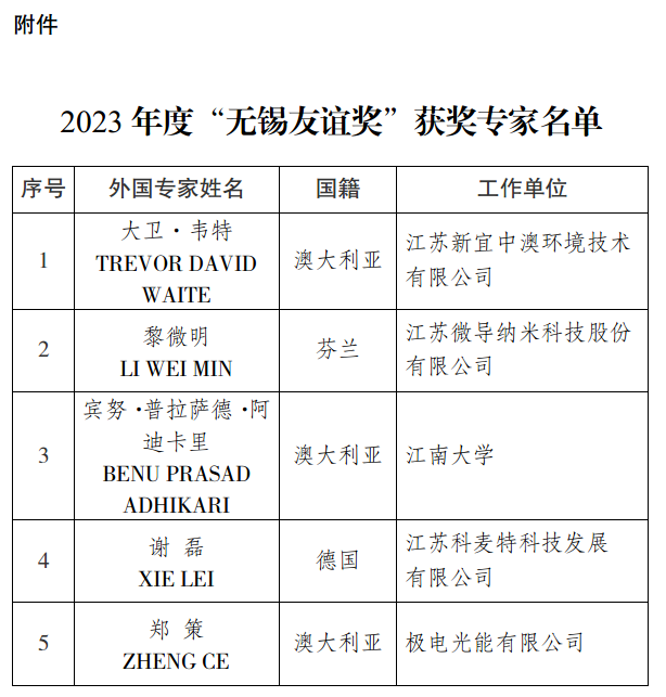 附件:2023年度“無錫友誼獎”獲獎專家名單