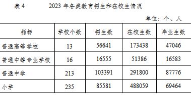 全市共有普通高校13所。普通高等教育本??普猩?.21萬(wàn)人,在校生16.02萬(wàn)人,畢業(yè)生4.38萬(wàn)人;研究生教育招生 0.45萬(wàn)人,在校生1.33 萬(wàn)人,畢業(yè)生 0.33 萬(wàn)人。全市中等職業(yè)教育在校生 5.14萬(wàn)人。九年義務(wù)教育鞏固率100%,高中階段教育毛入學(xué)率 100.8%,普及高中階段教育。特殊教育招生380人,在校生1670人。全市共有幼兒園603 所,比上年增加7 所,在園幼兒18.66萬(wàn)人。