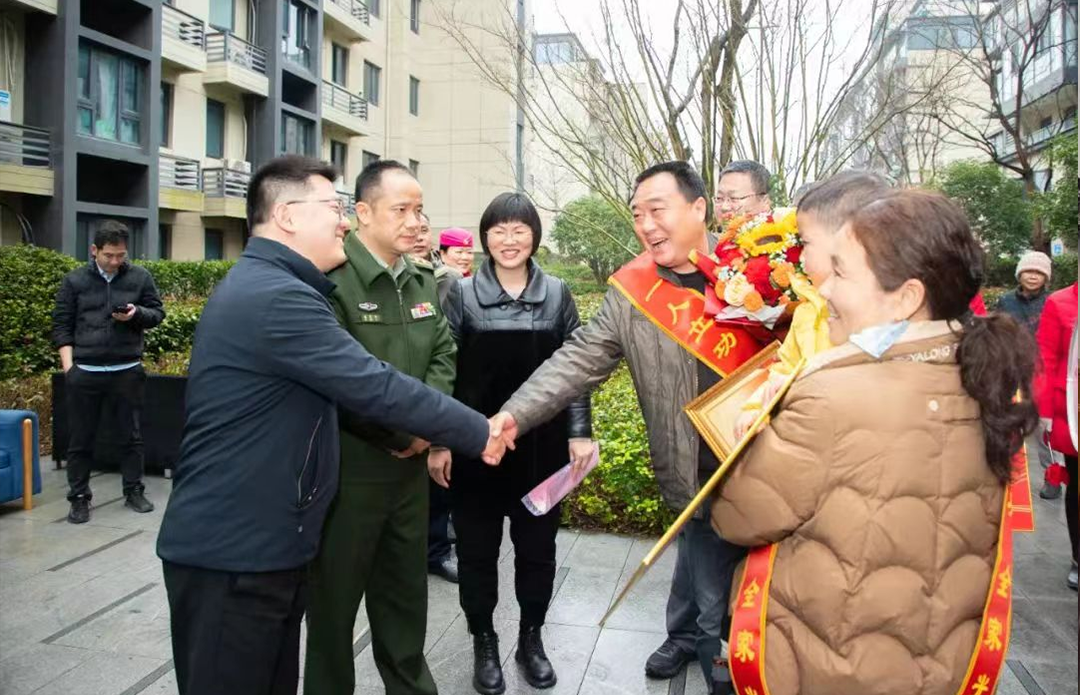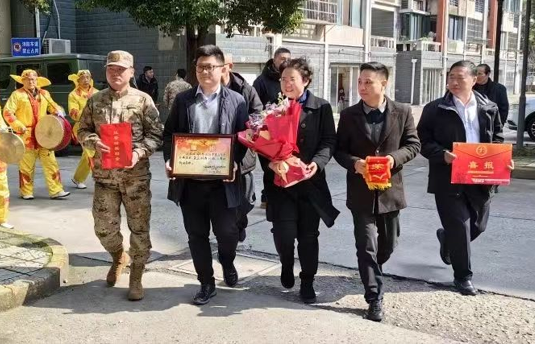 送喜報現(xiàn)場氛圍熱烈隆重,軍地代表和當(dāng)?shù)厝罕娎瓩M幅、敲鑼鼓,披綬帶、戴紅花,喜氣洋洋地把立功喜報、獎?wù)伦C書和慰問金送到軍人家屬手中,與他們共享榮耀和喜悅。慰問組分別與軍人家屬親切交談,詳細(xì)了解軍屬生活情況,感謝他們?yōu)椴筷?duì)建設(shè)培養(yǎng)了優(yōu)秀人才和對國防事業(yè)的支持和奉獻(xiàn),希望他們能夠繼續(xù)做好軍人的堅(jiān)強(qiáng)后盾,并鼓勵軍人繼續(xù)努力、再立新功,為家鄉(xiāng)增光添彩。
