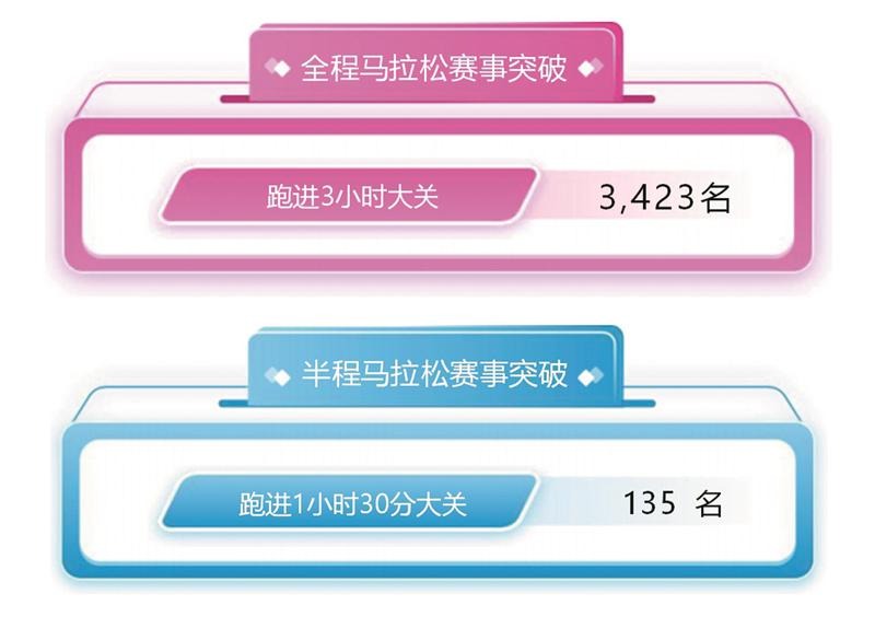 此次“錫馬”共有3423名選手成功“破3”,打破了國內(nèi)紀(jì)錄,位列全球馬拉松“破3”人數(shù)第三。在半程馬拉松中,135名跑者跑進(jìn)1小時30分。