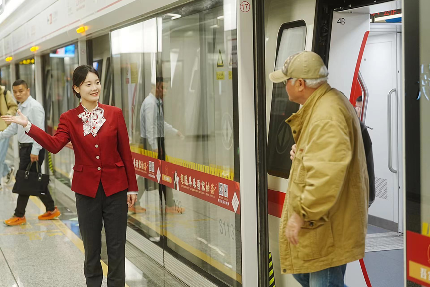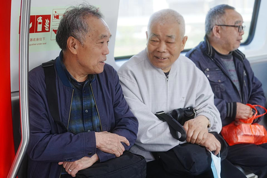 6 點(diǎn) 08 分,一列紅白相間的列車準(zhǔn)點(diǎn)到達(dá)西漳站,幾位穿著休閑、手拿相機(jī)的爺爺興奮地拍著窗外的景色。“我們今天約好了要去長江邊賞江景,這班地鐵真是個(gè)頂個(gè)的好??!”他們不約而同地說道。