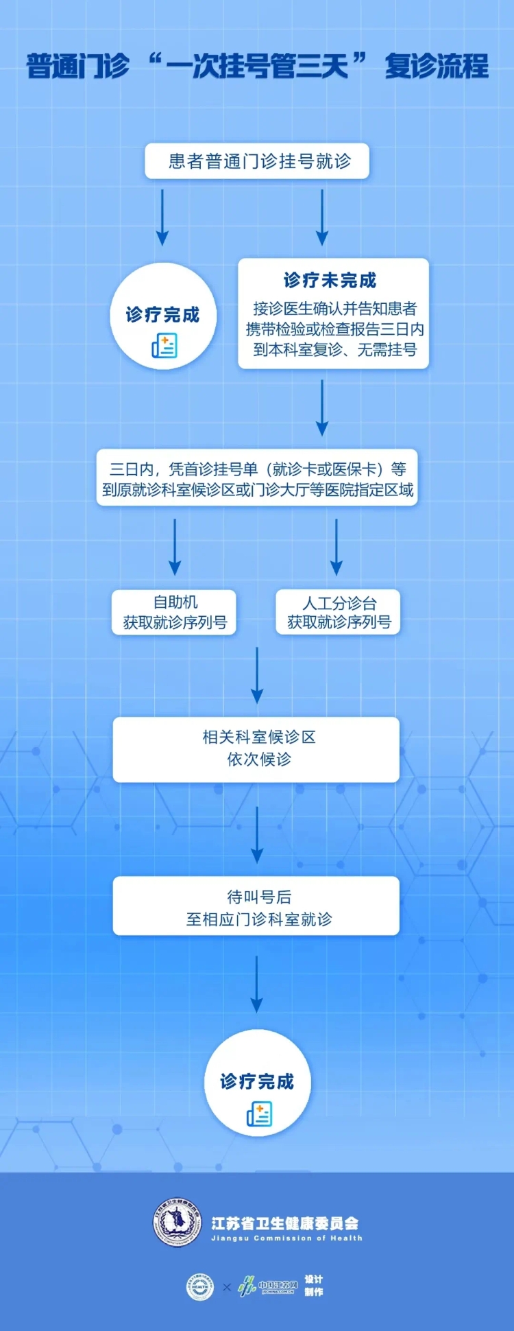 為進(jìn)一步優(yōu)化門診服務(wù)流程,持續(xù)提升患者就醫(yī)體驗(yàn),江南大學(xué)附屬醫(yī)院開展普通門診“一次掛號管三天”惠民實(shí)事項目。(復(fù)診流程信息詳見下方)