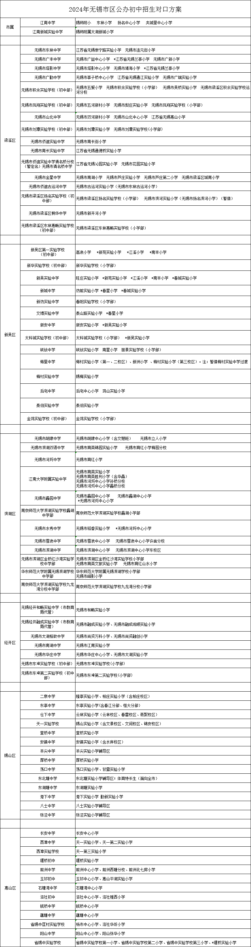 | 內(nèi)容概述 | 2024年無錫市區(qū)公辦初中招生對口方案 | ||||