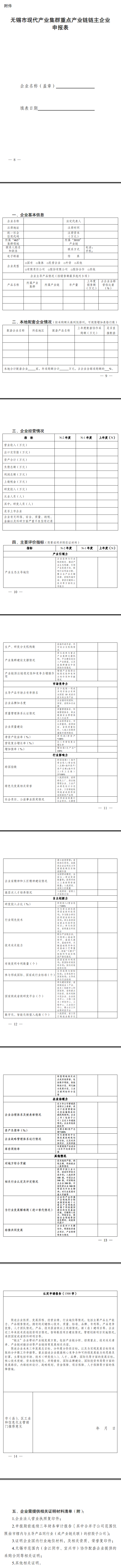 (一)《無錫市現(xiàn)代產(chǎn)業(yè)集群重點產(chǎn)業(yè)鏈鏈主企業(yè)申報表》;