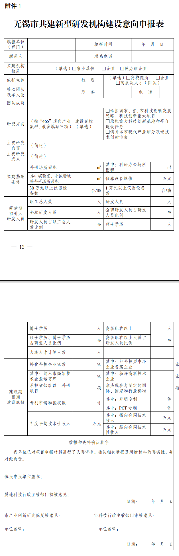 附件:1.無錫市共建新型研發(fā)機(jī)構(gòu)建設(shè)意向申報表