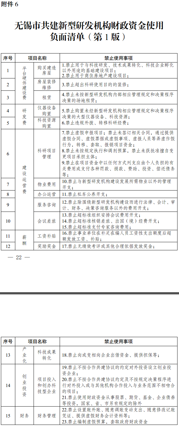6.無錫市共建新型研發(fā)機(jī)構(gòu)財政資金使用負(fù)面清單