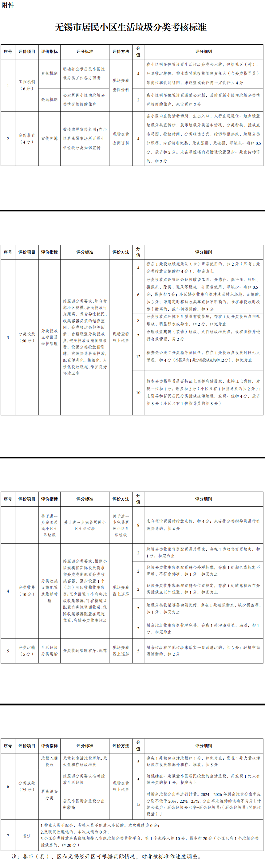 附件:無錫市居民小區(qū)生活垃圾分類考核標準