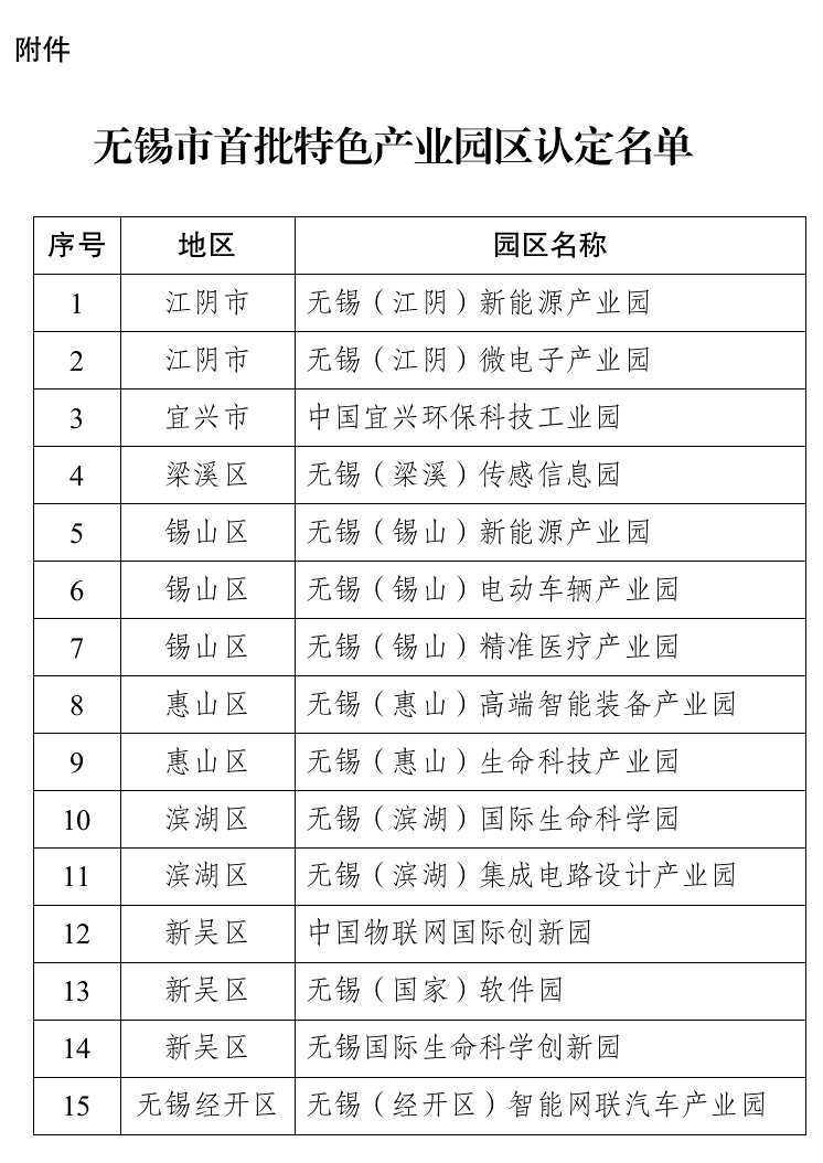 附件:無(wú)錫市首批特色產(chǎn)業(yè)園區(qū)認(rèn)定名單