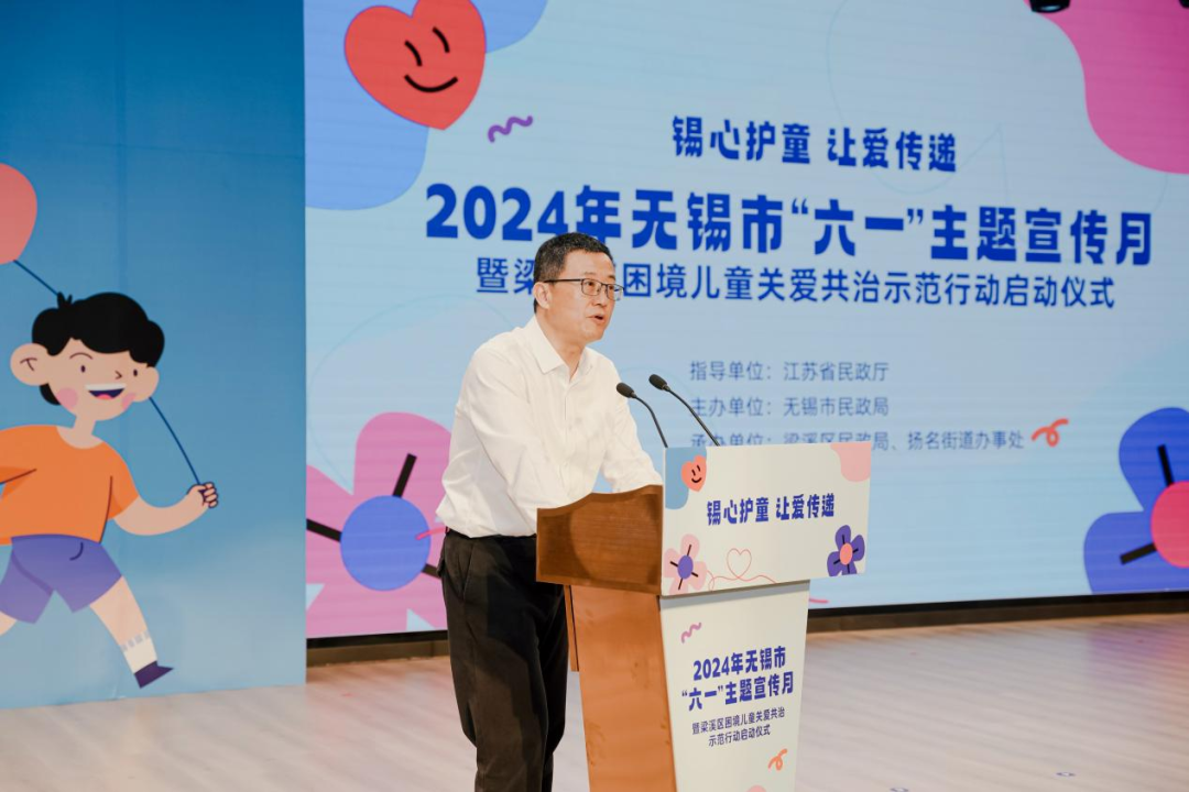 無錫市民政局黨委書記、局長周立軍在致辭中表示:近年來,在省民政廳、市委市政府的正確領(lǐng)導(dǎo)下,我市兒童福利工作取得長足發(fā)展,困境兒童精準(zhǔn)保障逐步健全,全市孤兒養(yǎng)育平均標(biāo)準(zhǔn)持續(xù)位居全省前列,在全省首個探索“慈善+兒童”融合模式,設(shè)立“事實無人撫養(yǎng)成長關(guān)愛計劃”等3項市級兒童福利類慈善項目,打造省級“蘇童成長”梁溪示范點,已建成省級示范性鎮(zhèn)(街道)未保站(關(guān)愛之家)40家。今年我局牽頭啟動了留守兒童和困境兒童關(guān)愛服務(wù)質(zhì)量提升三年行動,全市各級民政部門要借此機(jī)會,持續(xù)深化“主動發(fā)現(xiàn)”機(jī)制,加強提升困境兒童等特殊兒童群體關(guān)愛服務(wù)質(zhì)量;希望全市廣大兒童工作者一起構(gòu)建兒童“大保護(hù)”工作格局,協(xié)力共護(hù)無錫困境兒童健康成長。