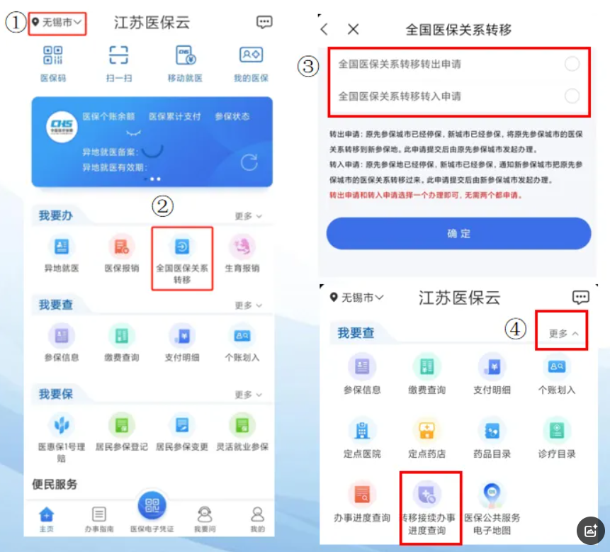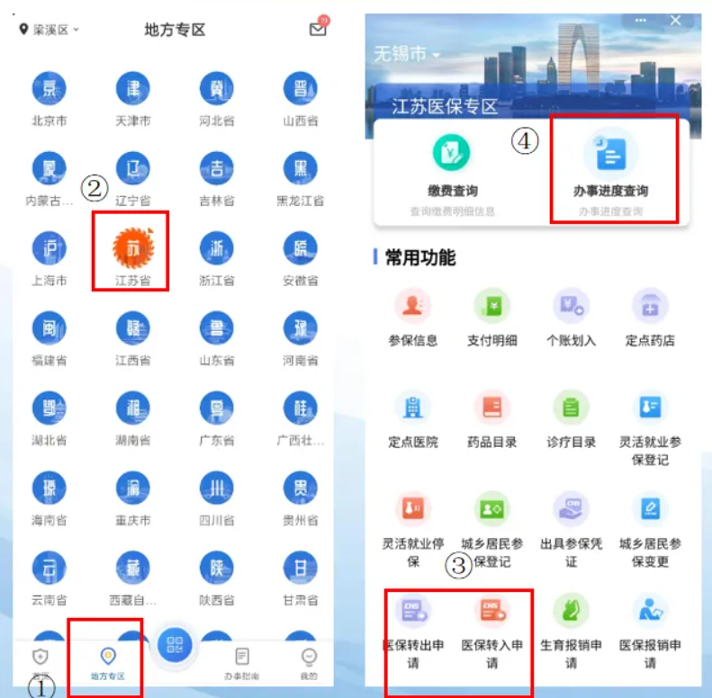 國家醫(yī)保服務平臺:地方專區(qū)→江蘇省→辦事進度查詢。