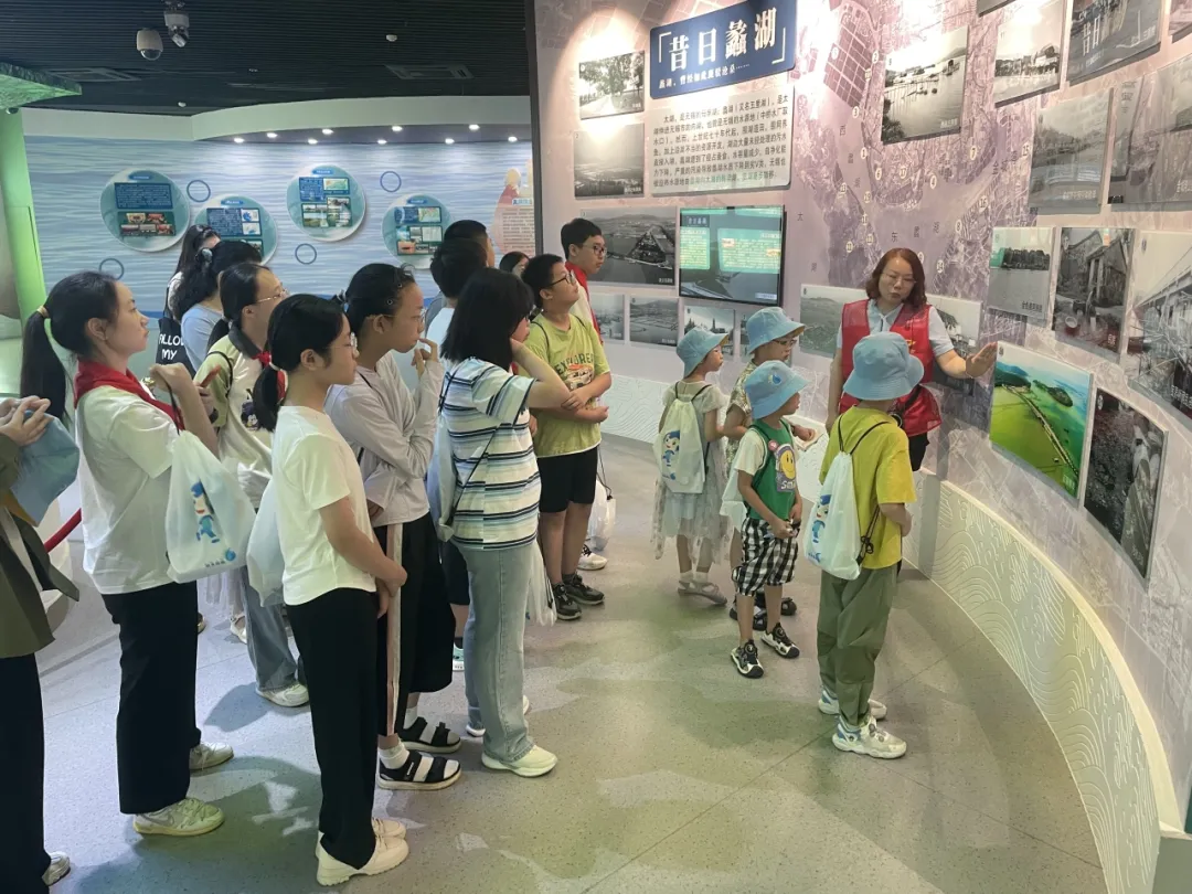 在蠡湖展示館,講解員以沙盤(pán)模型為引導(dǎo),介紹了太湖與無(wú)錫獨(dú)特的地理關(guān)聯(lián),直觀(guān)解釋了無(wú)錫作為太湖藍(lán)藻防控“主戰(zhàn)場(chǎng)”的原因,并借助展板將蠡湖綜合治理六大工程形象地展現(xiàn)在大家面前,讓同學(xué)們認(rèn)識(shí)到水生態(tài)保護(hù)的重要性。