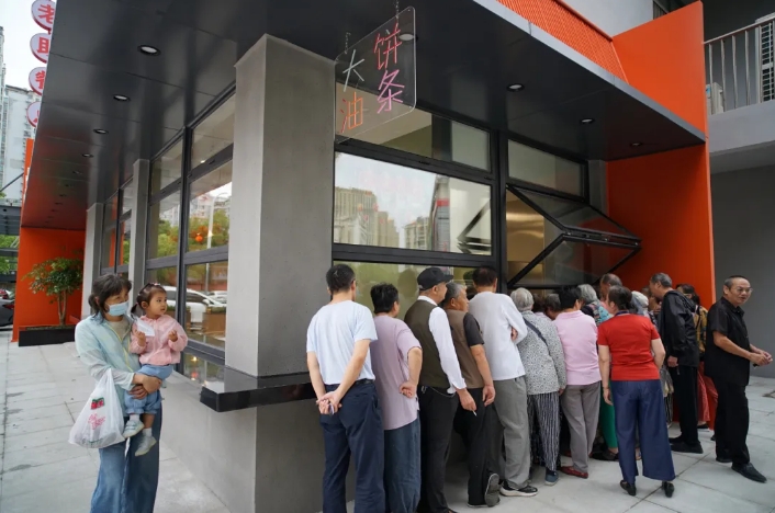 7點,位于五星家園326號的君來小食堂內(nèi)顧客絡(luò)繹不絕,八成是60歲以上的老人。食堂外的大餅油條售賣窗前更是排起了長隊。截至8點半,僅60歲以下市民購買早餐的總額就超過了1000元。中午,店堂內(nèi)又出現(xiàn)了排隊等位的現(xiàn)象。
