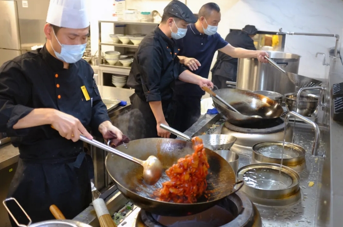 君來集團科技公司行政總廚袁毅一早就盯在小食堂后廚,從洗菜、切菜、烹飪到出鍋,全面把控菜品質(zhì)量。
