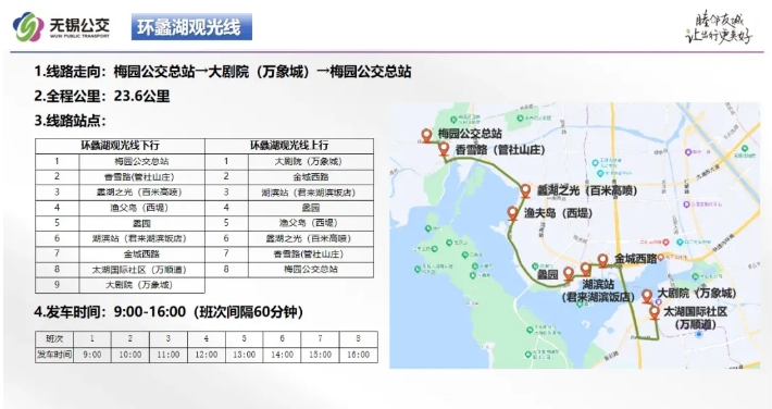 1.乘坐環(huán)蠡湖觀光線需提前預(yù)約(預(yù)約電話13806183110),乘坐樂游3號(hào)線無需預(yù)約,憑本人身份證直接在站臺(tái)乘坐(乘客較多時(shí),需要站臺(tái)排隊(duì)候車)。