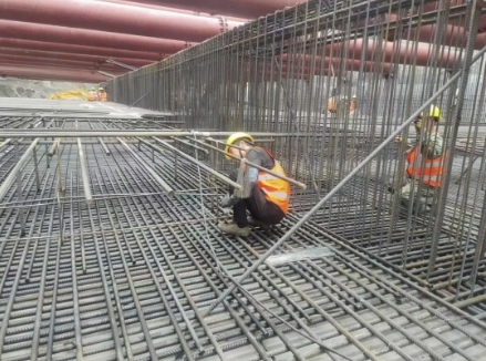 在施工過(guò)程中,建設(shè)團(tuán)隊(duì)陸續(xù)克服受力復(fù)雜、接口多、防水難度大等諸多難點(diǎn),提前謀劃并扎實(shí)推進(jìn)首塊底板澆筑的準(zhǔn)備工作。其中,防水施工是質(zhì)量控制和施工技術(shù)難點(diǎn),涉及主體自防水、外防水及施工縫、變形縫等各環(huán)節(jié),任一環(huán)節(jié)不佳都將影響整體防水效果。為此,建設(shè)團(tuán)隊(duì)對(duì)導(dǎo)線點(diǎn)和水準(zhǔn)點(diǎn)反復(fù)復(fù)核,扎實(shí)做好工程結(jié)構(gòu)測(cè)量放樣,全面加強(qiáng)全過(guò)程控制,有效確保了每一道工序的防水質(zhì)量。