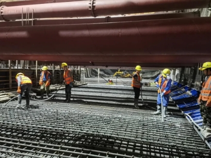 為確保首塊底板順利澆筑,建設(shè)團(tuán)隊(duì)精心組織、周密部署人力、材料、機(jī)械等準(zhǔn)備工作,并實(shí)施24小時(shí)帶班制度,全方位推進(jìn)建設(shè)進(jìn)程。同時(shí),建設(shè)團(tuán)隊(duì)不斷優(yōu)化運(yùn)輸路線并安排專(zhuān)人疏導(dǎo)交通,確?;炷凉?yīng)及時(shí)無(wú)斷鏈,并且在澆筑過(guò)程中嚴(yán)格遵守操作規(guī)程,精確控制澆筑厚度與振搗間距,保障混凝土的密實(shí)度和整體質(zhì)量,共同推動(dòng)底板澆筑任務(wù)順利完成。