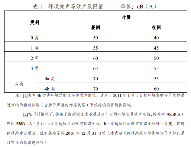 各類聲環(huán)境功能區(qū)適用的環(huán)境噪聲等效聲級(Leq)限值見表1。