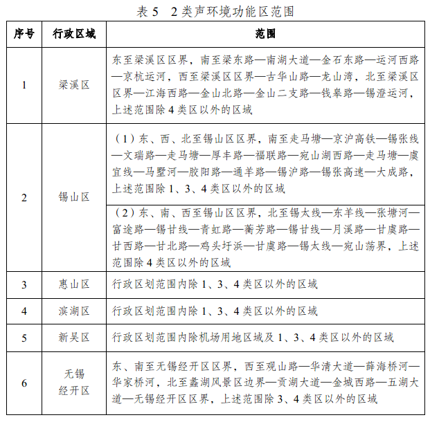 無錫市區(qū)沒有占地面積大于0.5平方公里的康復(fù)療養(yǎng)區(qū)域,不設(shè)0類聲環(huán)境功能區(qū)。