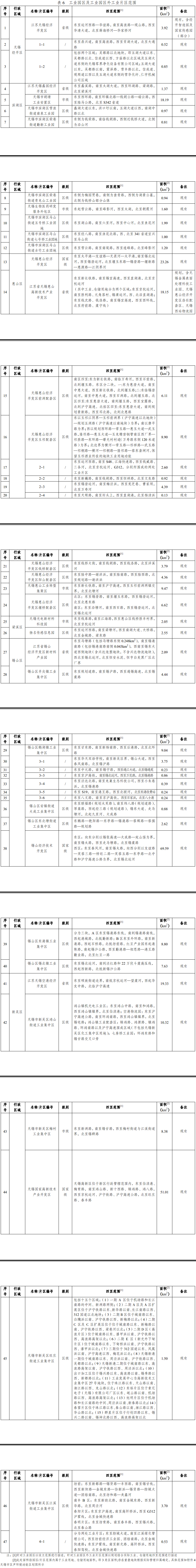 無錫市各級工業(yè)園區(qū)34個,包括梁溪區(qū)2個、錫山區(qū)8個、惠山區(qū)8個、濱湖區(qū)9個、新吳區(qū)6個、無錫經(jīng)開區(qū)1個;工業(yè)園區(qū)外仍有部分屬于工業(yè)、倉儲用地13處,包括錫山區(qū)6處、惠山區(qū)4處、新吳區(qū)1處、無錫經(jīng)開區(qū)2處,具體范圍見表6。