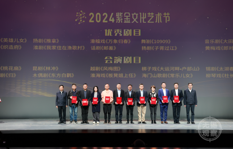 10月25日晚,2024紫金文化藝術(shù)節(jié)在江蘇大劇院落下帷幕,獲獎名單同步出爐,無錫收獲滿滿:無錫原創(chuàng)舞劇《10909》獲評優(yōu)秀劇目獎,錫劇《太湖春早》入選會演劇目,無錫市歌舞劇院演員裴梓行、無錫市錫劇院副院長王子瑜獲優(yōu)秀演員獎,無錫市委宣傳部獲評優(yōu)秀組織單位。此外,無錫市錫劇院錫劇《珍珠塔》也參演了此次藝術(shù)節(jié)。