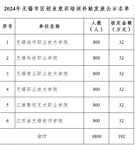 2024年無(wú)錫市區(qū)創(chuàng)業(yè)意識(shí)培訓(xùn)補(bǔ)貼發(fā)放公示