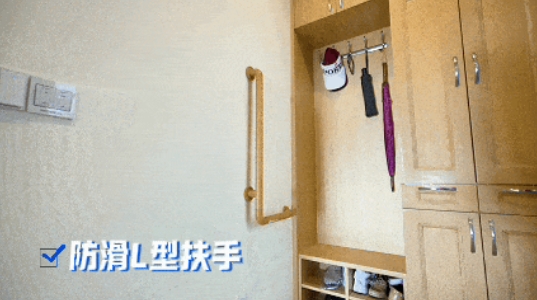 衛(wèi)生間:在馬桶邊裝個(gè)扶手,起身時(shí)就不會(huì)吃力;淋浴房門(mén)建議朝外開(kāi),避免老年人暈倒壓住門(mén)打不開(kāi);在墻上裝個(gè)淋浴椅,洗浴時(shí)可以坐下沖淋,更加安全。