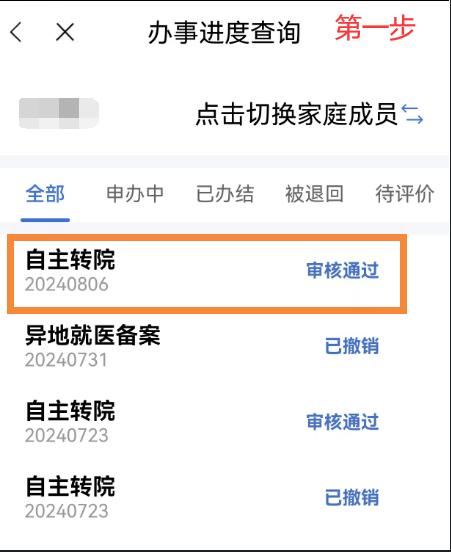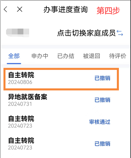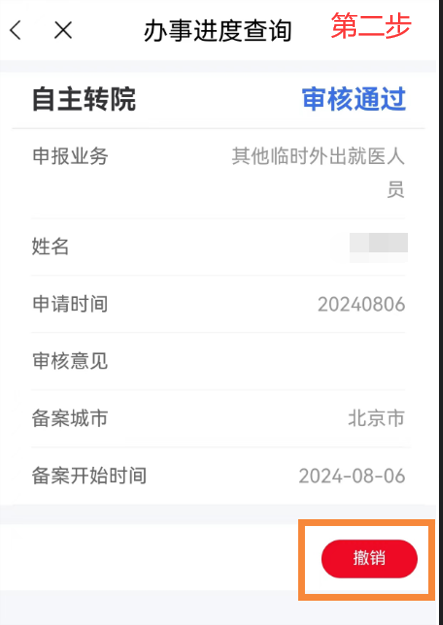 異地就醫(yī)備案成功后,點(diǎn)擊首頁【我要查】-【辦事進(jìn)度查詢】模塊,在【辦事進(jìn)度查詢】中選擇已審核通過的需要撤銷的備案信息,點(diǎn)擊【撤
