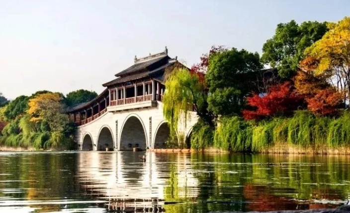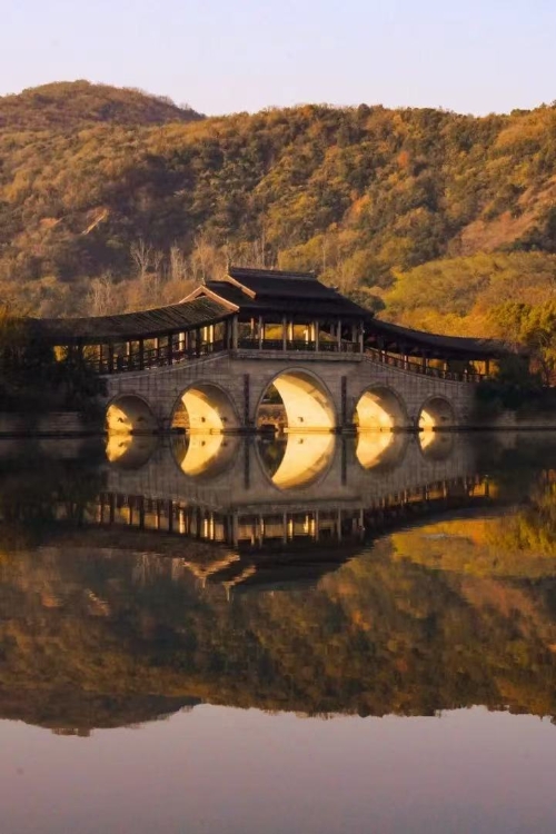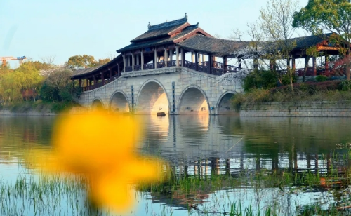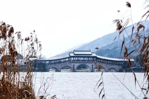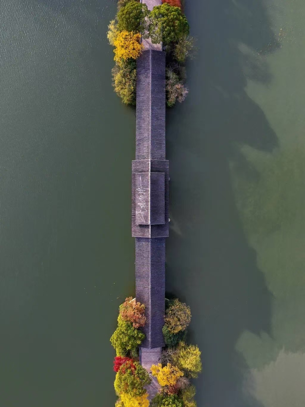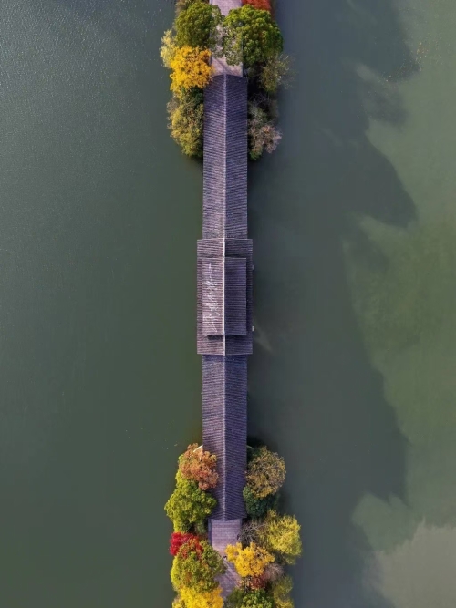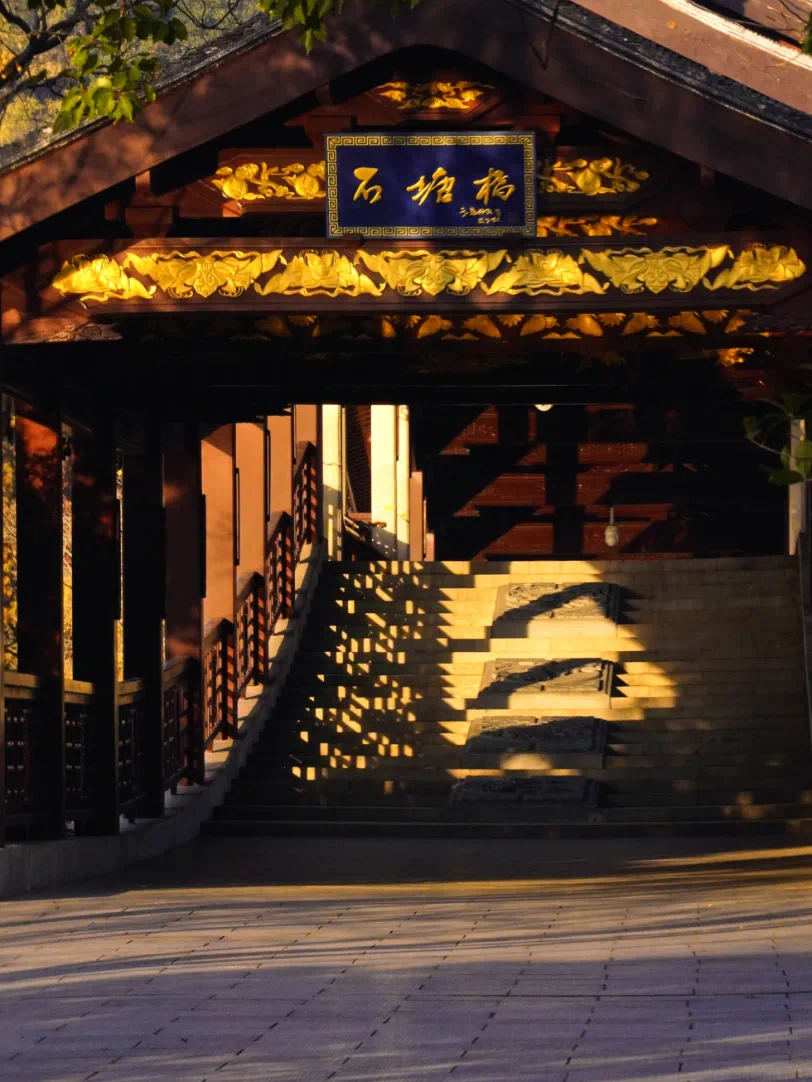 后來,石塘橋?qū)医?jīng)改建,成現(xiàn)廊橋模樣,橋的形式非常優(yōu)美,彎彎的倒影和五孔橋洞,像月牙,像圓月,正是“橫空暮色翻波去, 絕島秋聲繞樹來。”