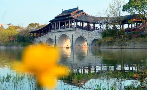 石塘橋上,廊、橋、亭、碑組成完備,橋身體量宏偉,比例協(xié)調(diào),頂部重檐卷棚,莊重飄逸,橋身各部分裝飾精巧,色澤鮮艷,文化厚重,是一處讓無錫人自豪的人文景觀。
