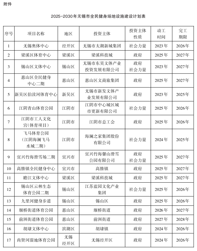 附件:2025-2030年無錫市全民健身場地設(shè)施建設(shè)計劃表