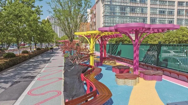 △學(xué)校門口的家長(zhǎng)等待區(qū)座椅變得色彩斑斕