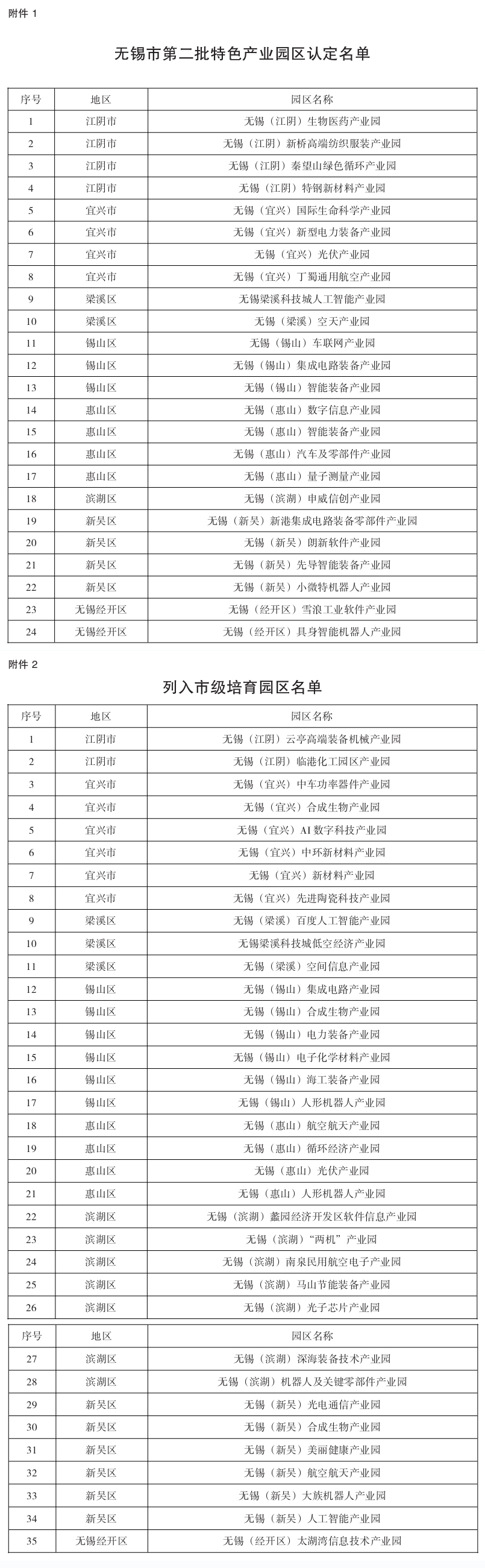 附件: 1. 無錫市第二批特色產(chǎn)業(yè)園區(qū)認定名單