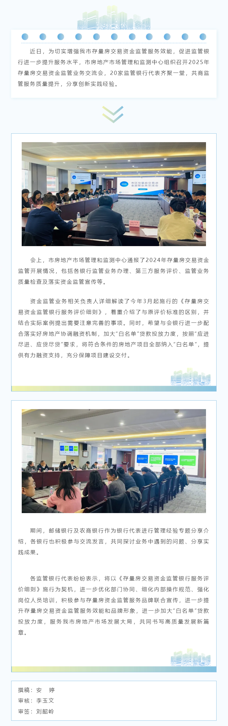 | 內(nèi)容概述 | 共話監(jiān)管服務(wù)攜手提升水平|市房地產(chǎn)市場(chǎng)管理和監(jiān)測(cè)中心召開(kāi)2025年存量房交易資金監(jiān)管業(yè)務(wù)交流會(huì) | ||||