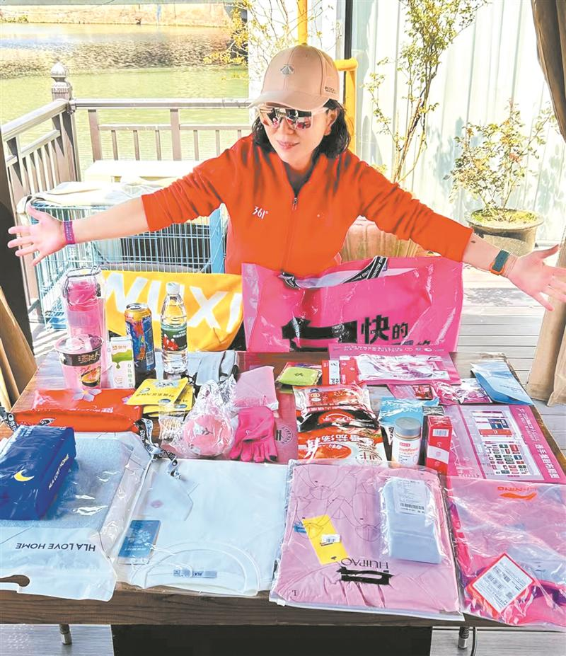 “開(kāi)箱!無(wú)錫到底發(fā)了多少東西?”很多抖音博主當(dāng)場(chǎng)開(kāi)啟“測(cè)評(píng)”。來(lái)自蘇州的跑者小王對(duì)著鏡頭展示:櫻花粉帆布包內(nèi),除了常規(guī)的號(hào)碼布、參賽服、雨衣,還有無(wú)錫三件套——火鍋底料、方便面、刮刮樂(lè)。“最絕的是送了艾草槌,跑完全程正好用它敲敲腿。”今年新增的能量包更堪稱(chēng)“補(bǔ)給站”:機(jī)器狗造型的液體鈣、櫻花海綿耳塞、維生素C嚼片、智能感應(yīng)地鐵卡套……