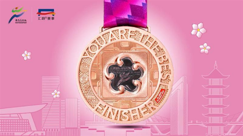 設(shè)計(jì)師透露,獎(jiǎng)牌采用玫瑰金(全馬)、月光銀(半馬/歡樂(lè)跑)雙色調(diào),“玫瑰金象征沉淀綻放,月光銀代表璀璨瞬間。”