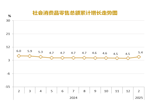 | 內(nèi)容概述 | 2025年1-2月社會(huì)消費(fèi)品零售總額增長(zhǎng)5.4% | ||||